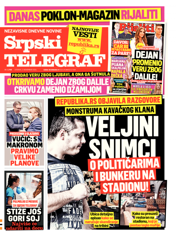 Naslovna strana Srpskog telegrafa za 01.11.2021.