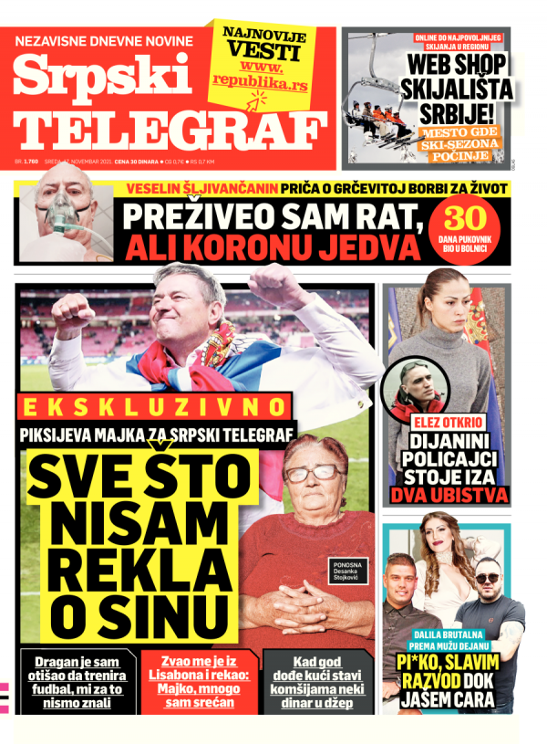 Naslovna strana Srpskog telegrafa za 16.11.2021.