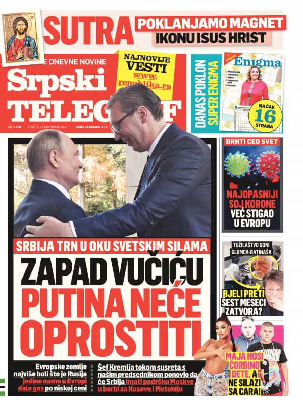 Naslovna strana Srpskog telegrafa za 26.11.2021.