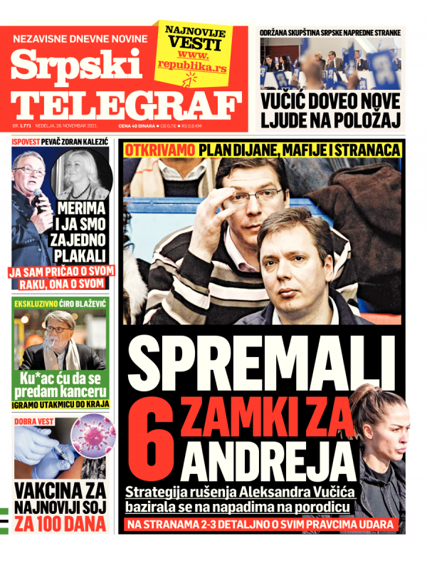 Naslovna strana Srpskog telegrafa za 28.11.2021.