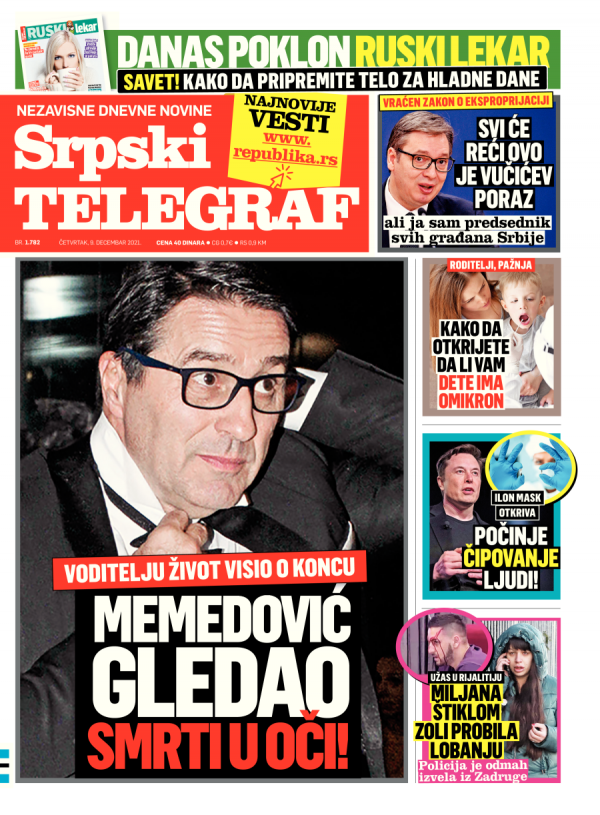 Naslovna strana Srpskog telegrafa za 09.12.2021.