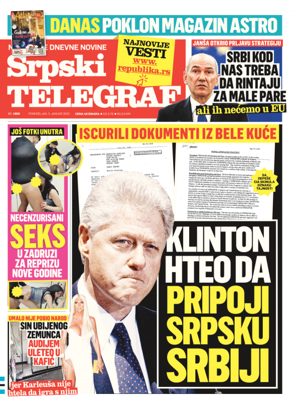 Naslovna strana Srpskog telegrafa za 03.01.2022.