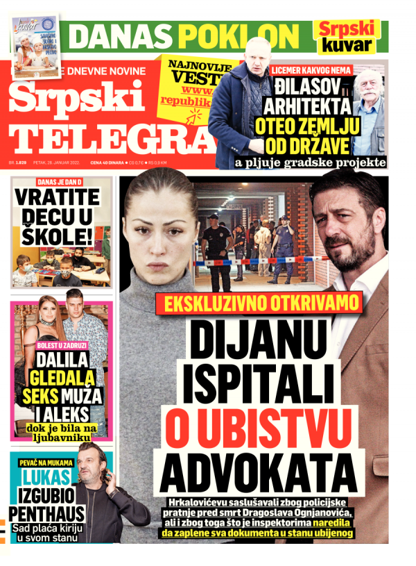 Naslovna strana Srpskog telegrafa za 28.01.2022.