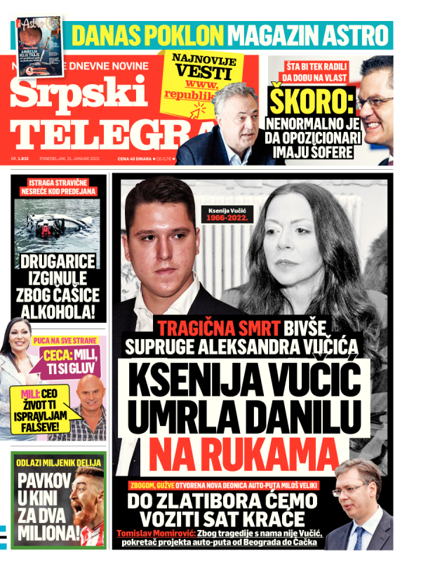 Naslovna strana Srpskog telegrafa za 31.01.2022.