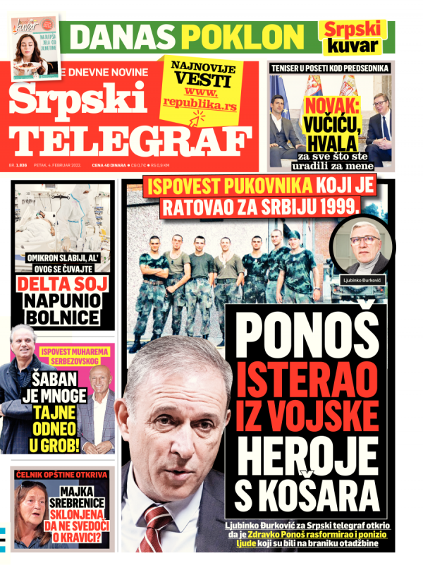 Naslovna strana Srpskog telegrafa za 04.02.2022.