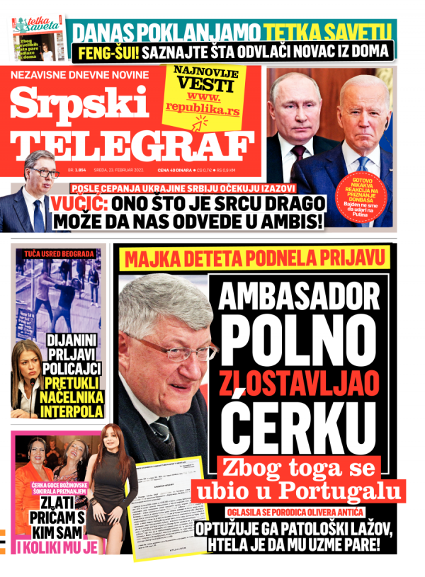 Naslovna strana Srpskog telegrafa za 23.02.2022.