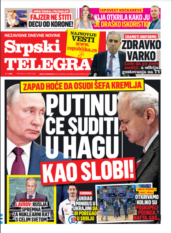 Naslovna strana Srpskog telegrafa za 03.03.2022.