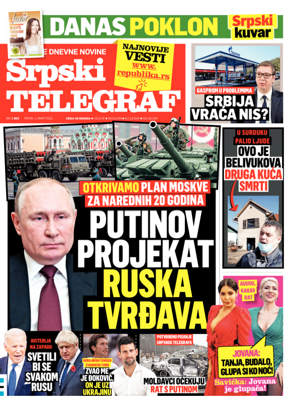 Naslovna strana Srpskog telegrafa za 04.03.2022.
