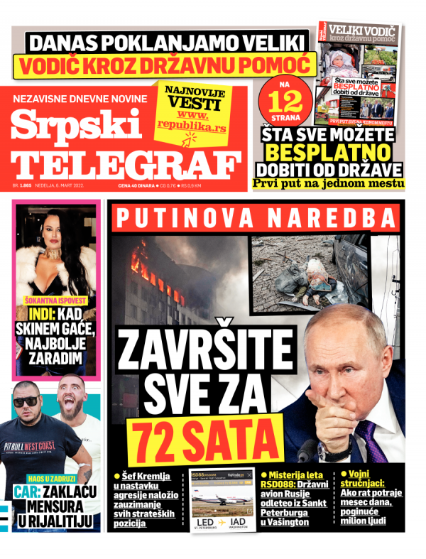 Naslovna strana Srpskog telegrafa za 06.03.2022.
