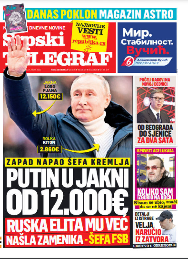 Naslovna strana Srpskog telegrafa za 21.03.2022.