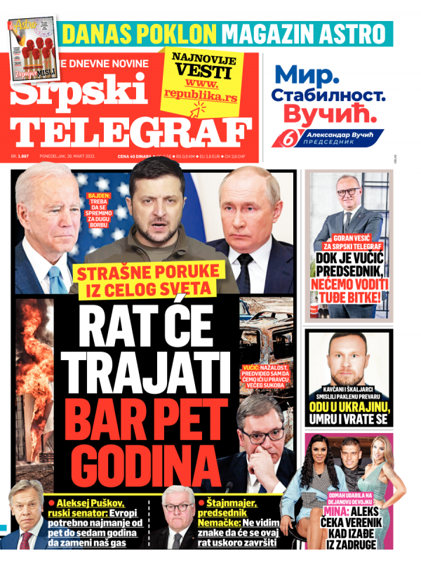 Naslovna strana Srpskog telegrafa za 28.03.2022.