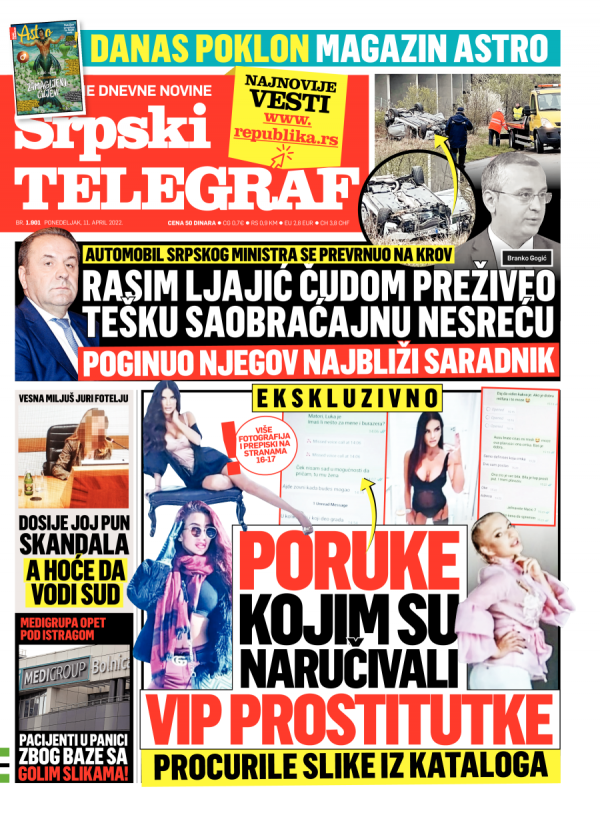 Naslovna strana Srpskog telegrafa za 11.04.2022.