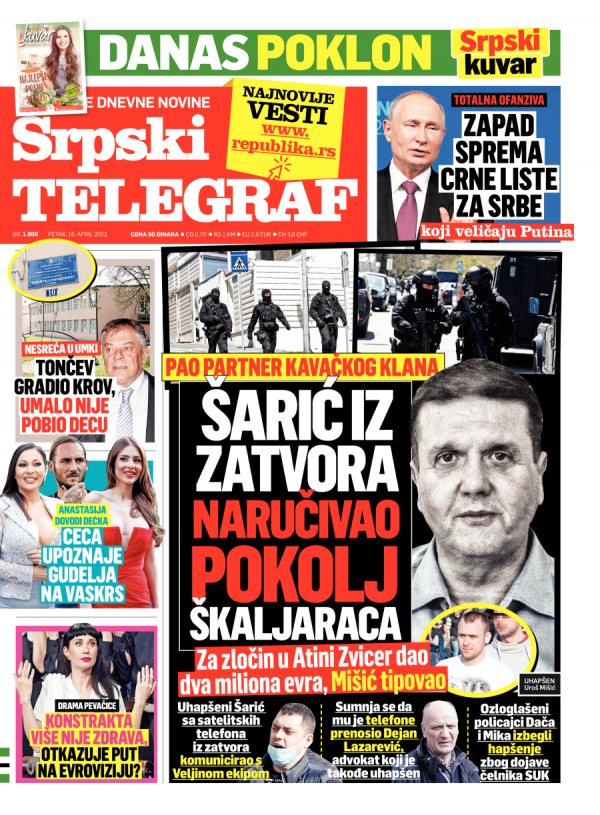 Naslovna strana Srpskog telegrafa za 15.04.2022.