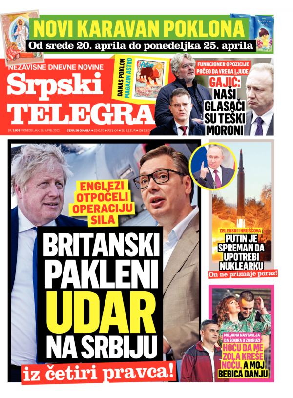 Naslovna strana Srpskog telegrafa za 18.04.2022.