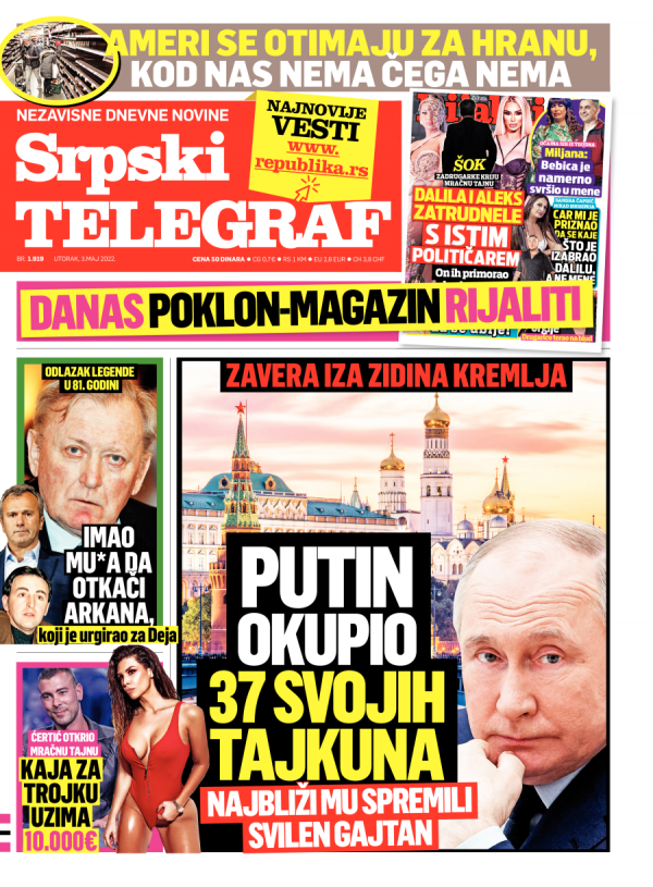 Naslovna strana Srpskog telegrafa za 03.05.2022.