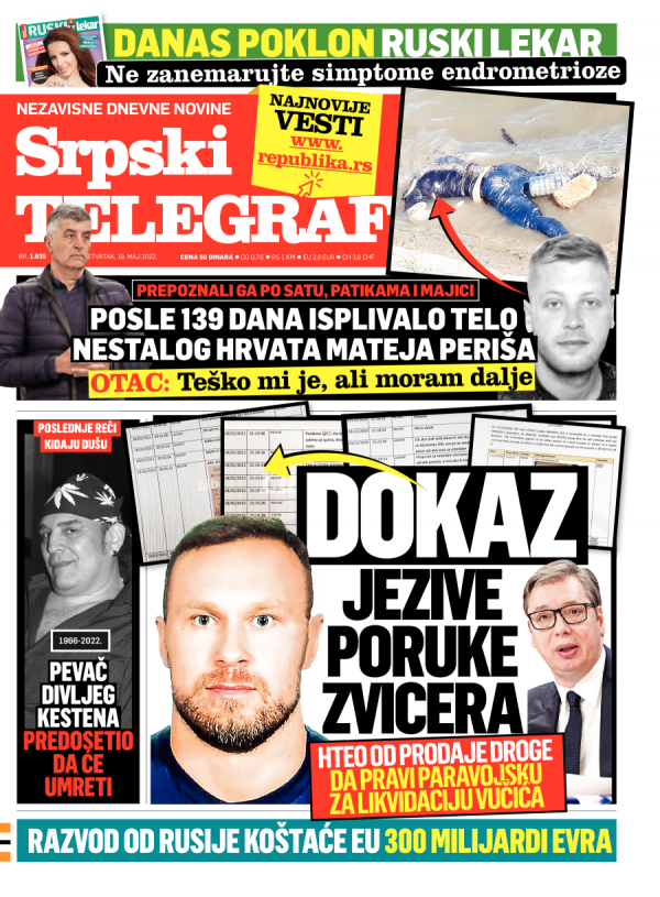 Naslovna strana Srpskog telegrafa za 19.05.2022.