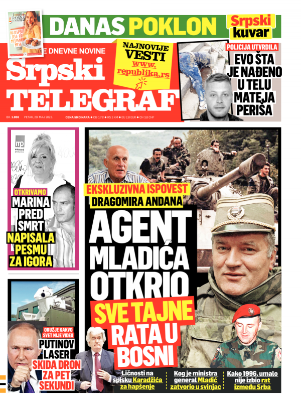 Naslovna strana Srpskog telegrafa za 20.05.2022.