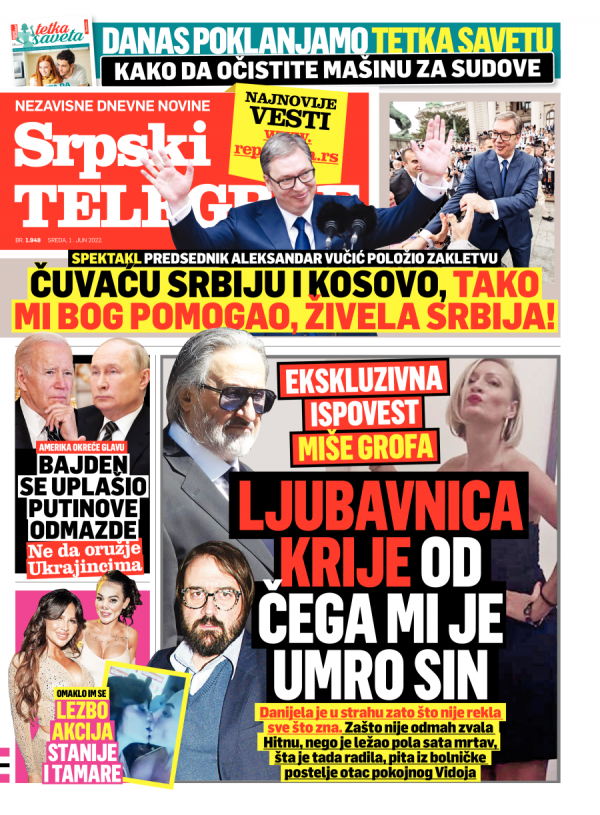 Naslovna strana Srpskog telegrafa za 01.06.2022.