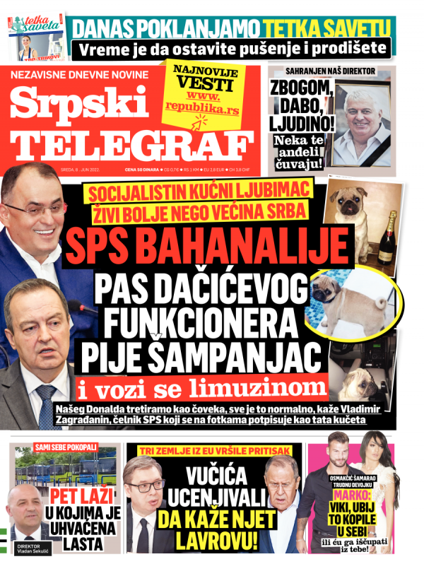 Naslovna strana Srpskog telegrafa za 08.06.2022.