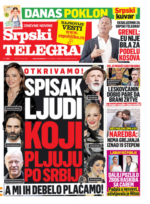 Naslovna strana Srpskog telegrafa za 15.07.2022.