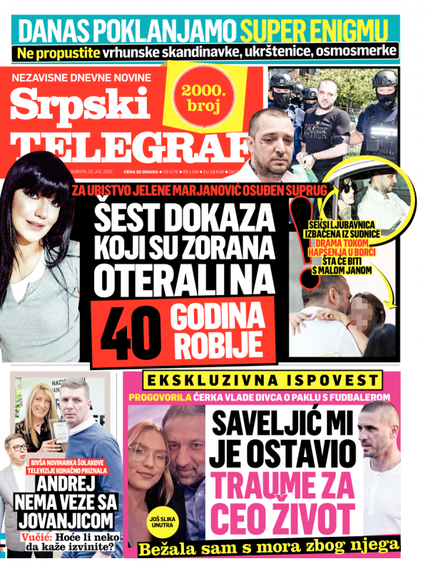 Naslovna strana Srpskog telegrafa za 23.07.2022.