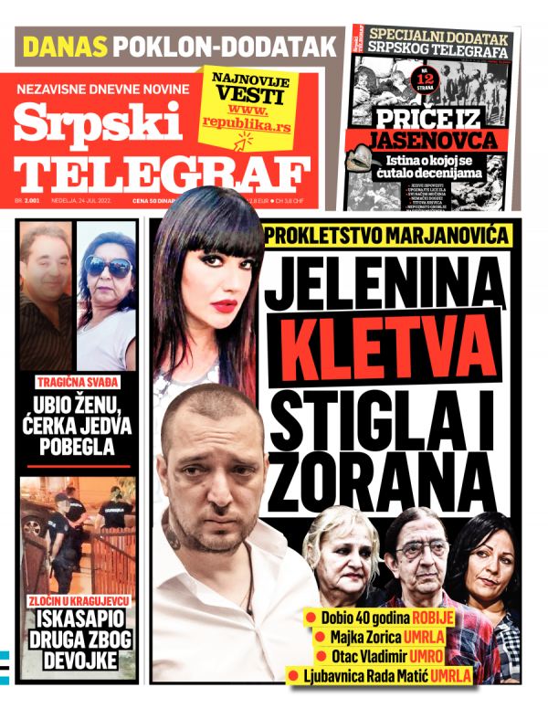 Naslovna strana Srpskog telegrafa za 24.07.2022.