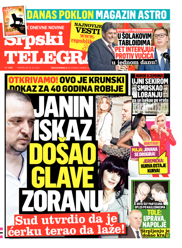 Naslovna strana Srpskog telegrafa za 25.07.2022.
