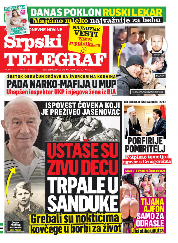 Naslovna strana Srpskog telegrafa za 04.08.2022.