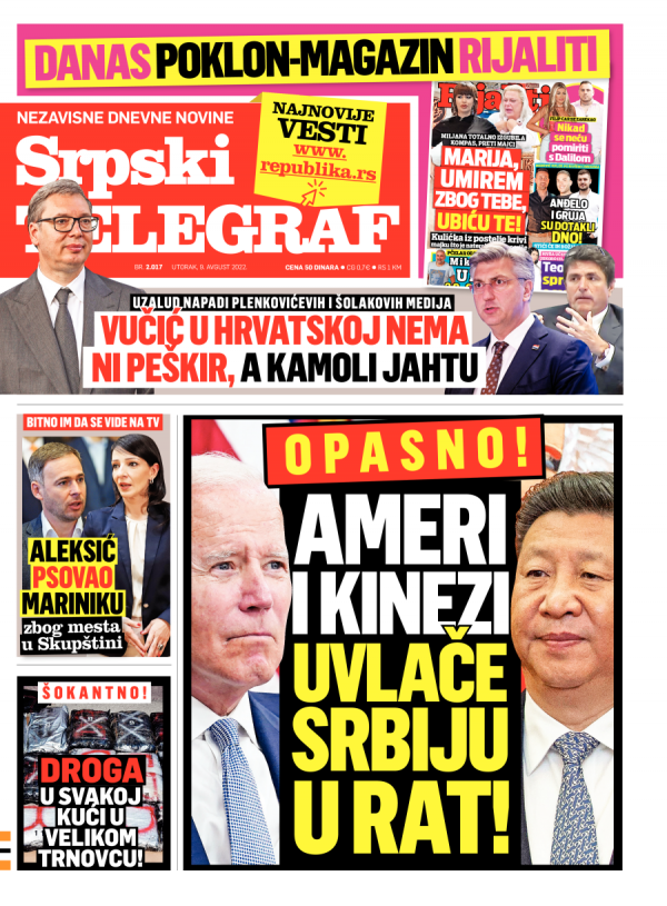 Naslovna strana Srpskog telegrafa za 09.08.2022.