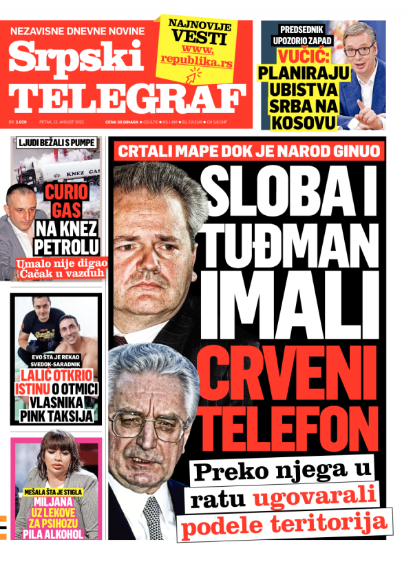 Naslovna strana Srpskog telegrafa za 12.08.2022.