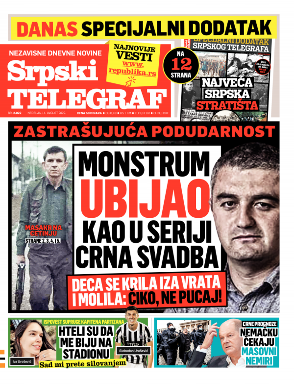 Naslovna strana Srpskog telegrafa za 14.08.2022.