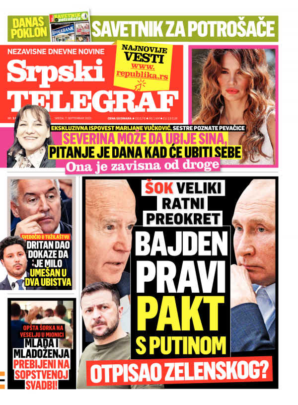 Naslovna strana Srpskog telegrafa za 07.09.2022.