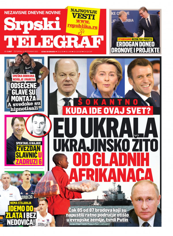 Naslovna strana Srpskog telegrafa za 08.09.2022.