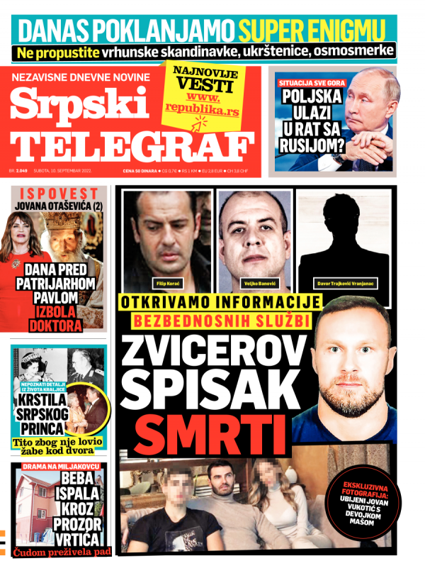 Naslovna strana Srpskog telegrafa za 10.09.2022.