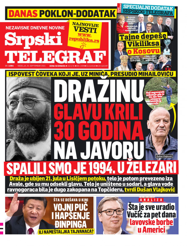 Naslovna strana Srpskog telegrafa za 25.09.2022.