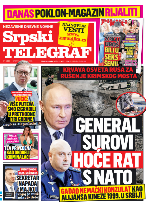 Naslovna strana Srpskog telegrafa za 11.10.2022.