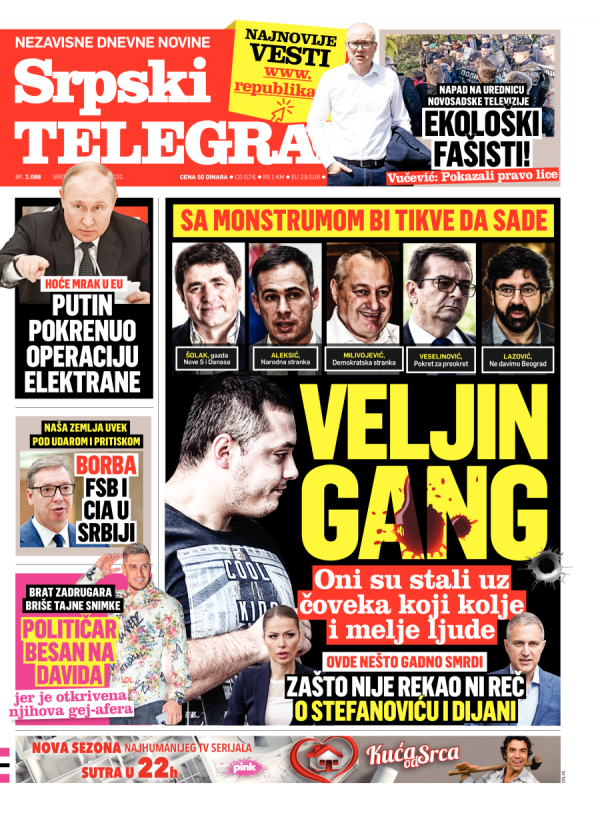 Naslovna strana Srpskog telegrafa za 19.10.2022.