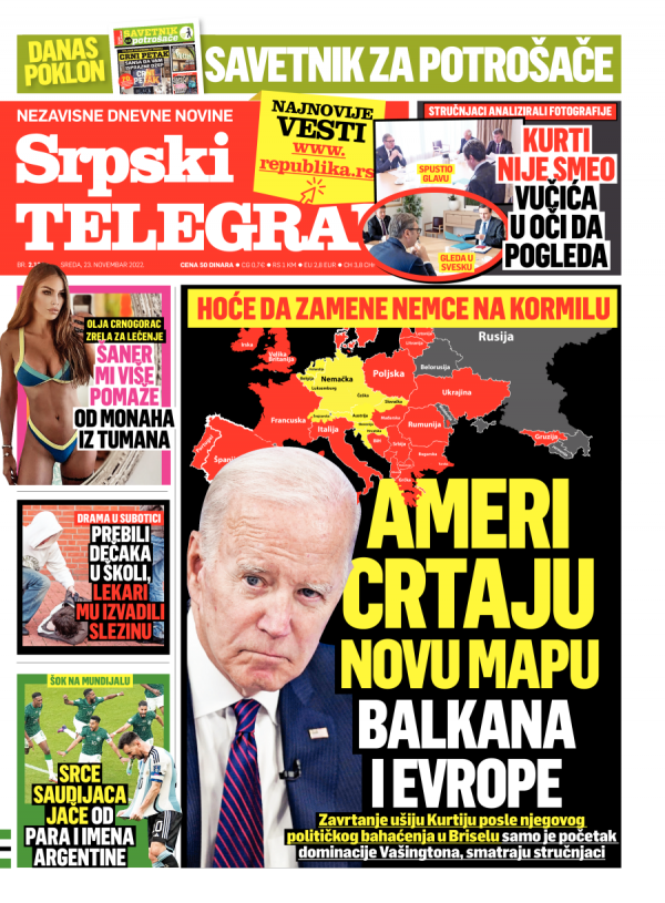 Naslovna strana Srpskog telegrafa za 23.11.2022.