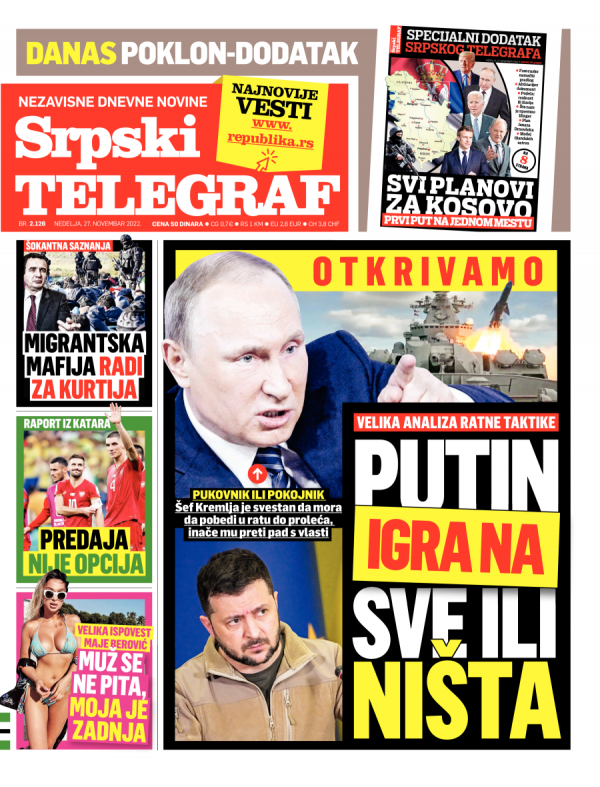 Naslovna strana Srpskog telegrafa za 27.11.2022.