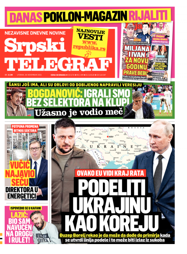 Naslovna strana Srpskog telegrafa za 29.11.2022.