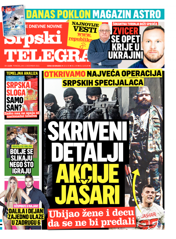 Naslovna strana Srpskog telegrafa za 05.12.2022.
