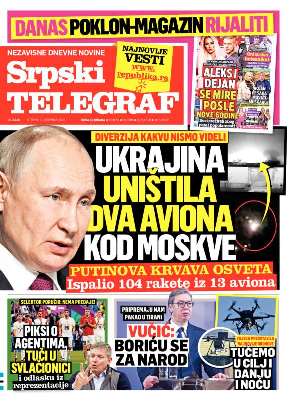 Naslovna strana Srpskog telegrafa za 06.12.2022.