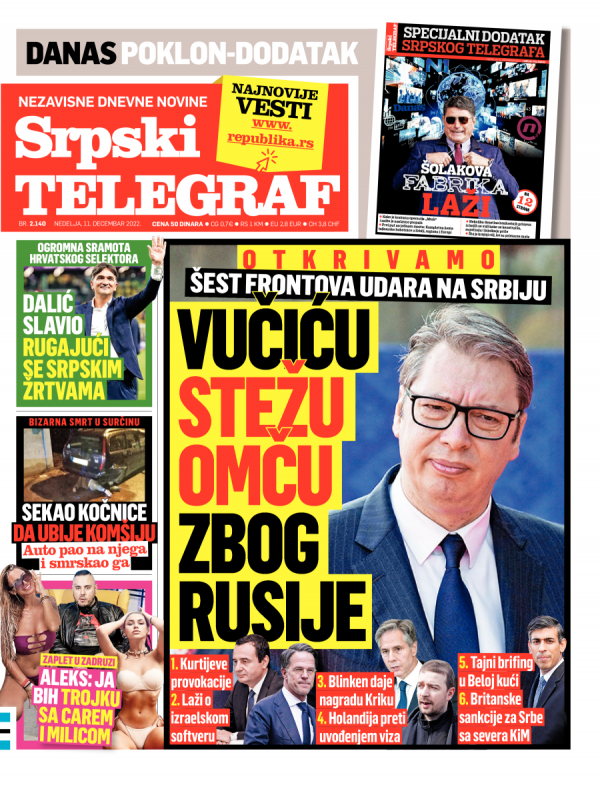 Naslovna strana Srpskog telegrafa za 11.12.2022.