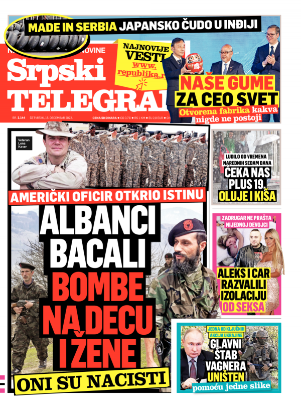 Naslovna strana Srpskog telegrafa za 15.12.2022.