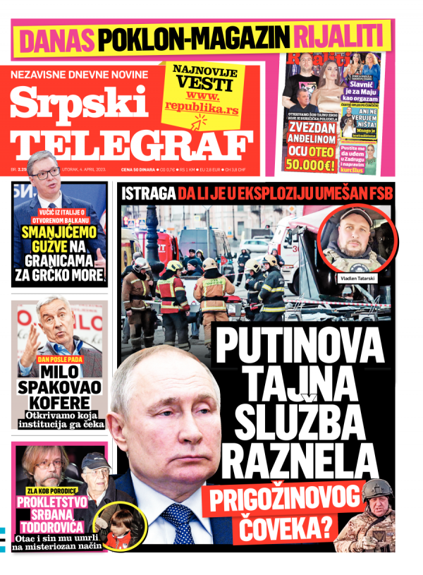 Naslovna strana Srpskog telegrafa za 04.04.2023.