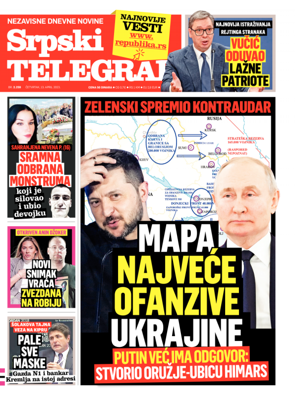 Naslovna strana Srpskog telegrafa za 13.04.2023.