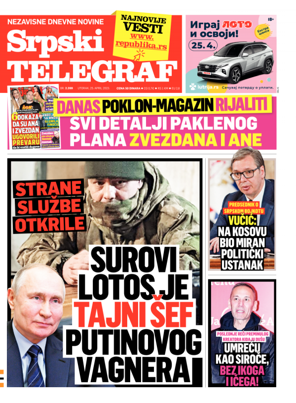 Naslovna strana Srpskog telegrafa za 25.04.2023.