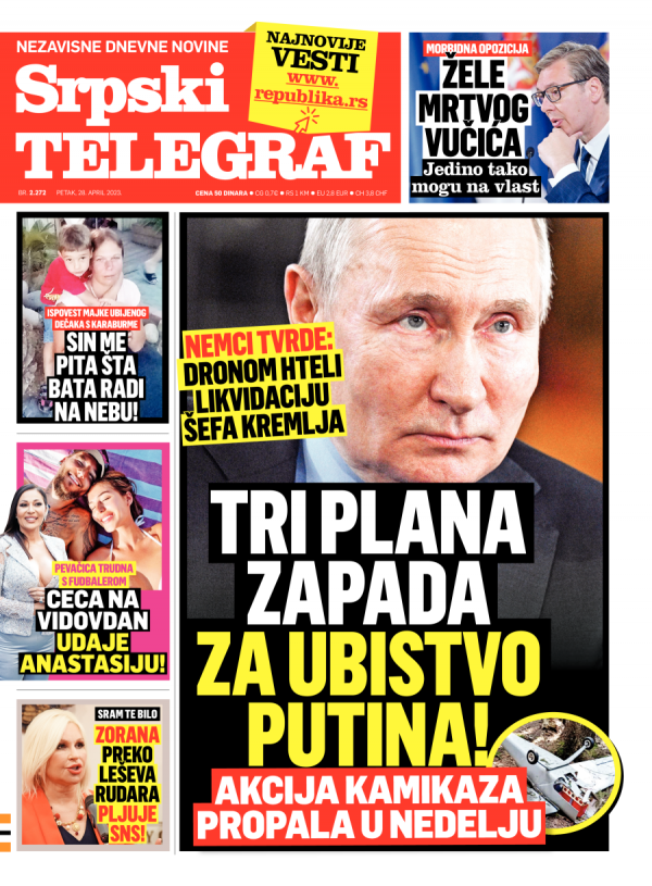 Naslovna strana Srpskog telegrafa za 28.04.2023.