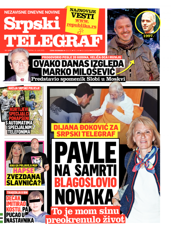 Naslovna strana Srpskog telegrafa za 15.06.2023.