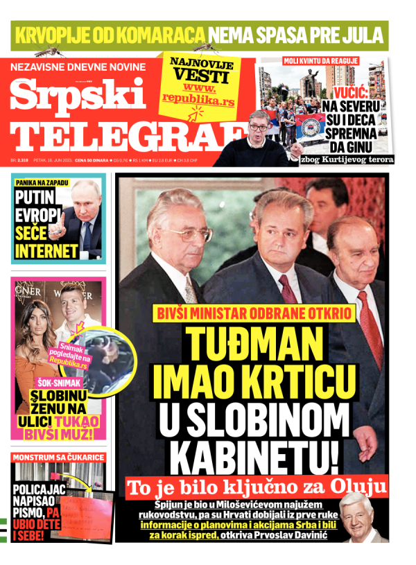 Naslovna strana Srpskog telegrafa za 16.06.2023.